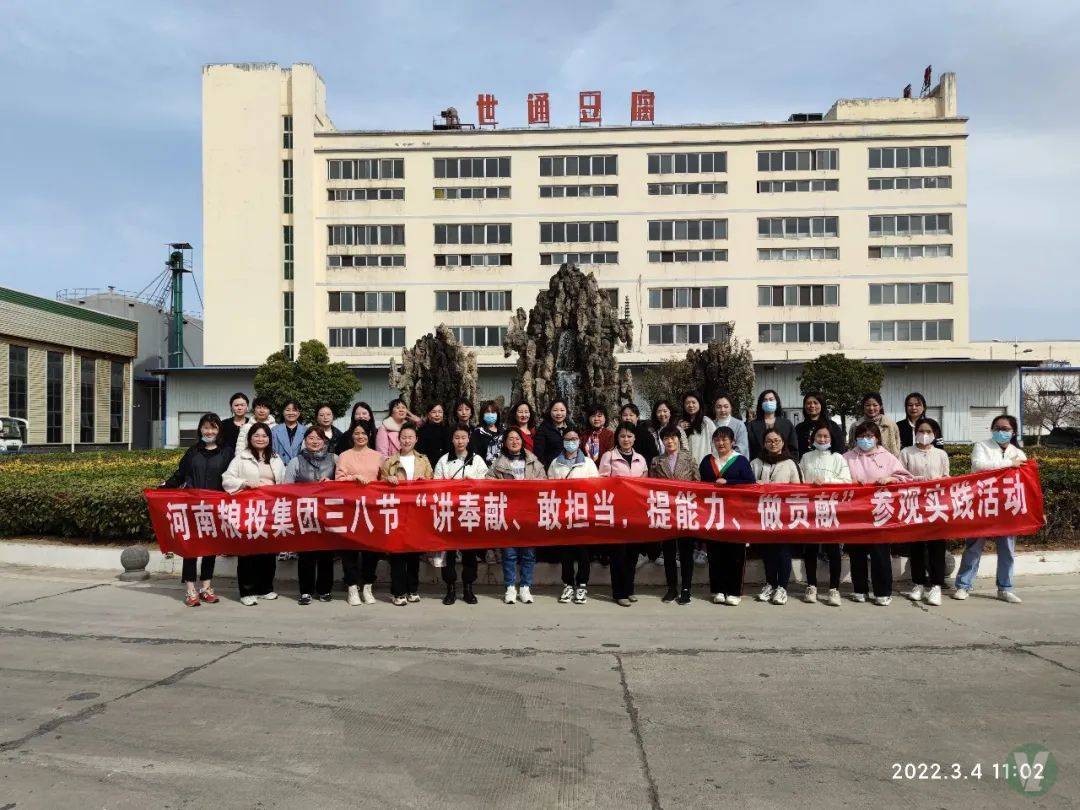 浏览次数:10542次3月4日,为迎接即将到来的“三八”国际劳动妇女节,充分调动女职工工作积极性,激发干事创业热情,结合“能力作风建设年”活动有关要求,河南粮投集团以“讲奉献、敢担当,提能力、做贡献”为主题开展赴河南世通食品有限公司参观学习实践活动,集团总会计师任才,集团本部及子公司女职工代表40余人参加了活动。